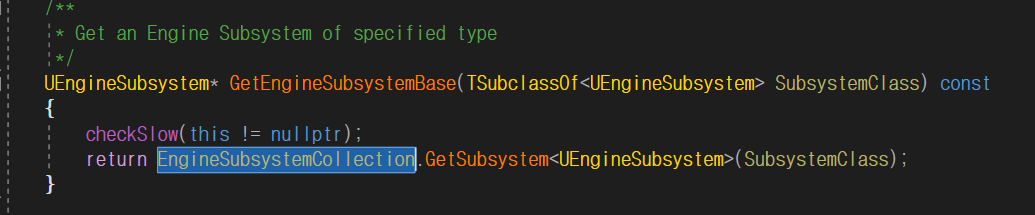 | Engine | UEngineSubsystem | 에디터와 인게임 모두 |