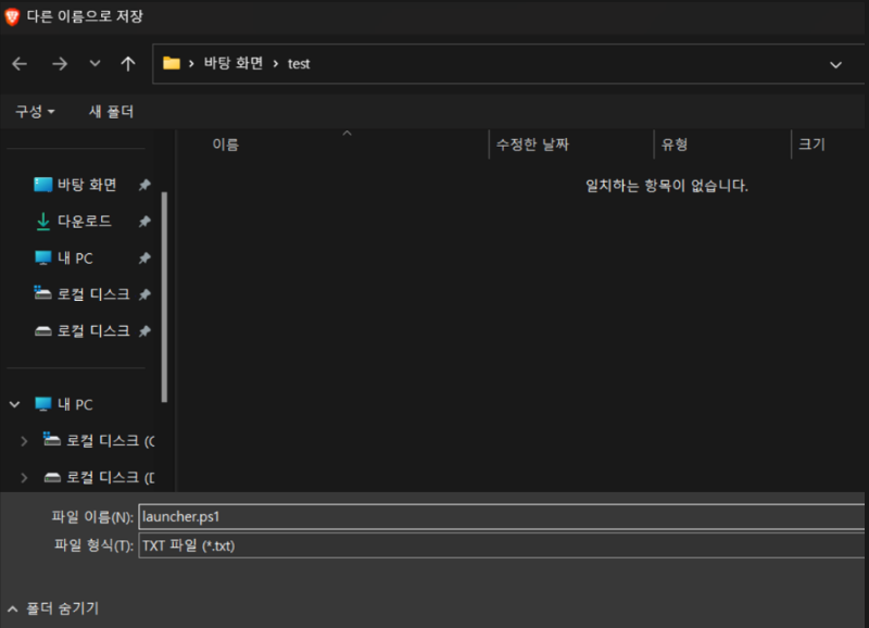 위 링크에 들어가서 우클릭 ⇨ 다른 이름으로 저장 ⇨ launcher.ps1.txt를 launcher.ps1으로 변경 ⇨