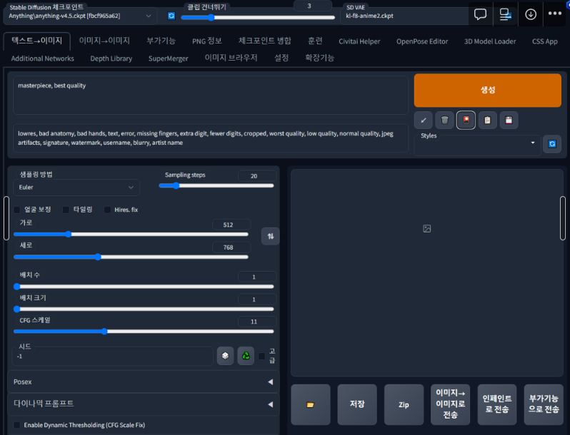 | Stable Diffusion Web UI 사용해보기 (2) 이미지 생성 기본 요소 (0) | 2023.03.21 |