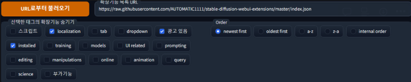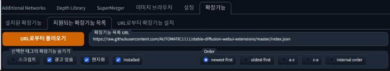 확장 기능 목록에서, URL 로부터 불러오기 버튼을 누르면 현재 확장 목록을 관리하는 json 으로부터 목록을 읽어냅니다.