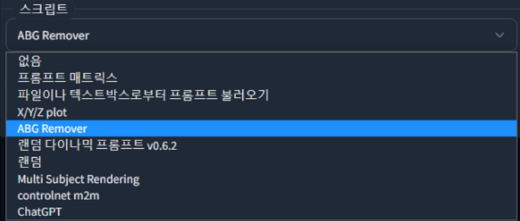 스크립트 탭에서는 다양한 기능을 선택할 수 있습니다.