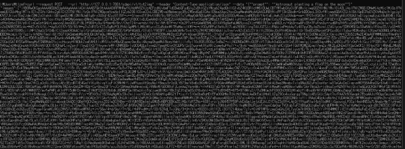 curl --request POST --url "[http://127.0.0.1:7861/sdapi/v1/txt2img](http://127.0.0.1:7861/sdapi/v1/txt2img)" --header "Content-Type:application/json" --data "{""prompt"": ""Astronaut planting a flag on the moon""}"